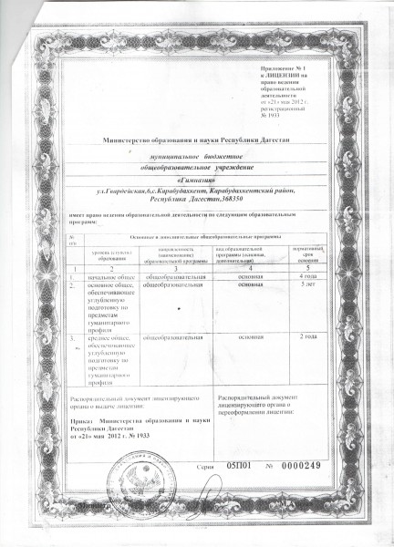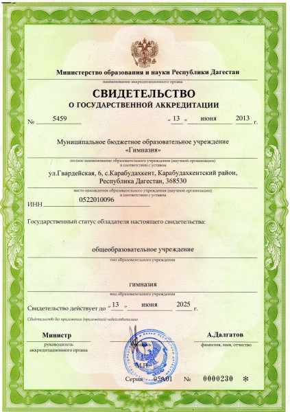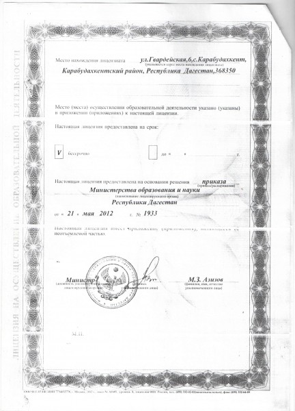 | Адрес местонахождения образовательной организации* | 368530, Республика Дагестан Карабудахкентский район с.Карабудахкент ул. Агалава Галимова №6 |